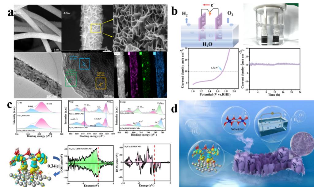 近日,我校yl6809永利集团2022级硕士研究生曹洪双的研究成果“Interfacial engineering of Hierarchical ultra-thin NiCo-LDH nanosheet superstructures nanofiber for Water cracking electrocatalysis”(DOI: 10.1039/d3ta02519e)在国际知名TOP期刊《Journal of Alloys and Compounds》(IF:5.8)上发表。该工作依托“内蒙古自治区绿色化工重点实验室”、“工业催化自治区高等学校重点实验室”、“内蒙古自治区“草原英才’工程产业创新人才团队”科研平台,在徐广然副教授指导下完成。