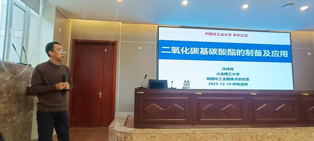 2025年12月10日,大连理工大学精细化工全国重点实验室副主任任伟民教授应邀莅临我院,开展了一场题为“二氧化碳基碳酸酯的制备及应用”的学术讲座。本次讲座由yl6809永利集团竺宁教授主持,吸引了学院多位骨干教师及博硕士研究生的积极参与。任伟民教授在讲座中详细介绍了二氧化碳资源化利用的基础研究与工程技术领域的核心问题,并分享了其团队在该领域的最新研究成果和创新思路。他通过巧妙的设计和深入浅出的讲解,展示了二氧化碳基碳酸酯的制备方法及其在多个领域的应用前景。讲座内容丰富、观点新颖,不仅拓宽了与会师生的学术视野,还有效激发了学生们对科研工作的兴趣和热情。此次学术交流活动不仅促进了我院与大连理工大学之间的学术交流与合作,也为我院师生提供了一个宝贵的学术交流平台,进一步推动了我院在相关领域的研究与发展。