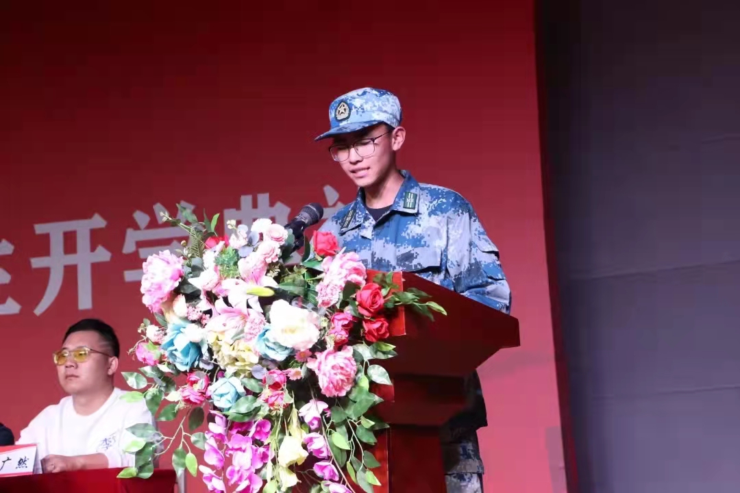 非金属21-1班的张睿轩同学代表新生发言,他呼吁同学们要抓住每一寸光阴,不仅要追求学业上的成功,还要追求个人的全面发展。