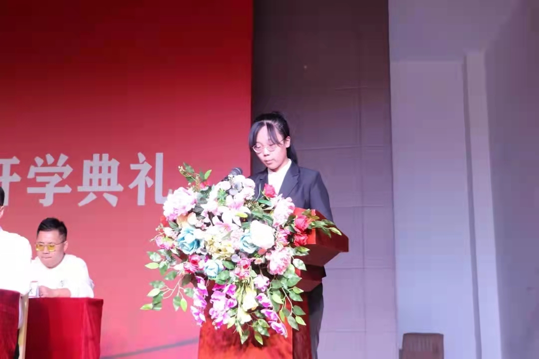 化18-3班的王建英同学代表在校生发言,她从自身经验出发,鼓励大家一定要大胆地走出去,学会融入一个新的集体,砥砺品格、提高素养。在细微处提能力,在思考中求真知。