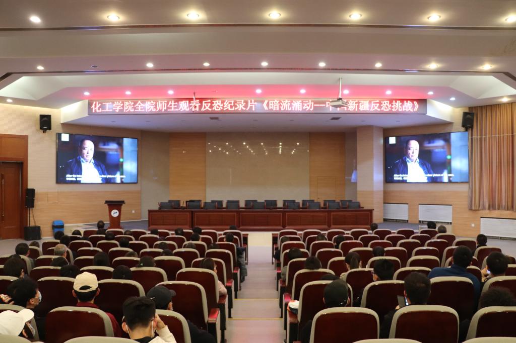 为引导全院师生坚定反恐信念,弘扬和平主义精神,激发爱党爱国热情,yl6809永利集团于4月15日下午15:00—22:00在化工楼报告厅组织全体师生分七批,共计2800余人集中观看反恐纪录片《暗流涌动--中国新疆反恐挑战》。