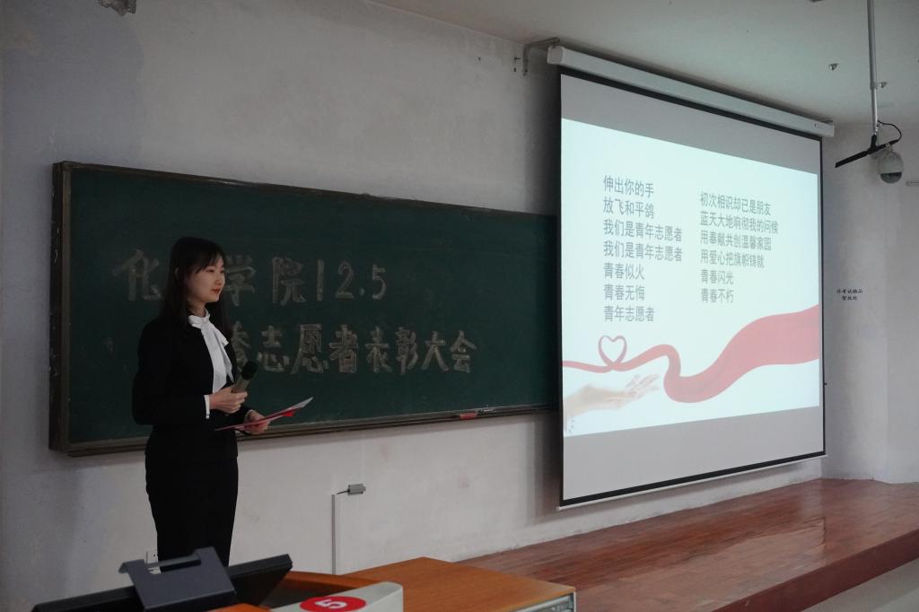 12月5日是“国际志愿者日”,为充分发挥学雷锋志愿服务先进典型示范带动作用,大力弘扬“奉献、友爱、互助、进步”的志愿者精神,提高广大同学参与志愿活动的积极性,坚定我院志愿者们奉献自我,服务社会的决心,yl6809永利集团团委于12月3日下午在四教报二召开yl6809永利集团优秀志愿者表彰大会。院团委书记任敏老师、学院志愿者近200人参加大会。