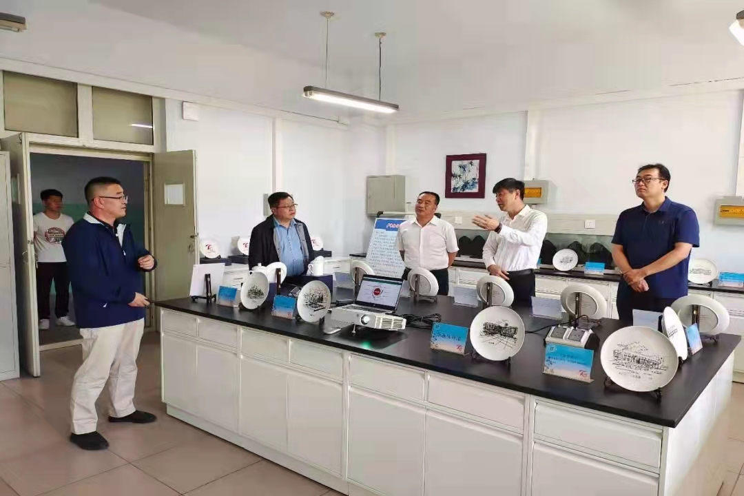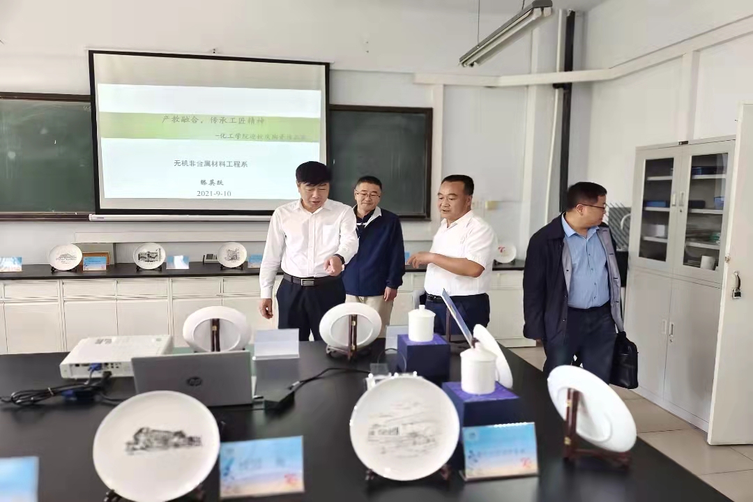 学院主要负责人向孙书记介绍了陶瓷作品展前期准备工作和校庆期间开展情况,滕英跃教授围绕无机非金属材料专业产教融合和《综合实训》课程开展情况作了详细汇报。