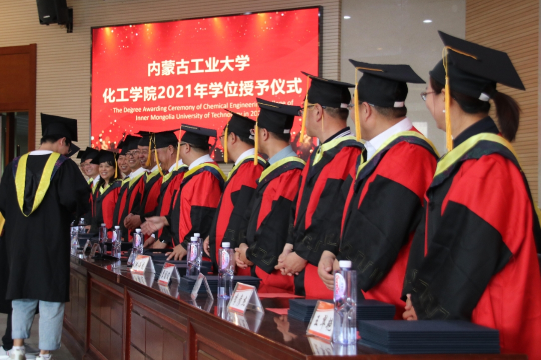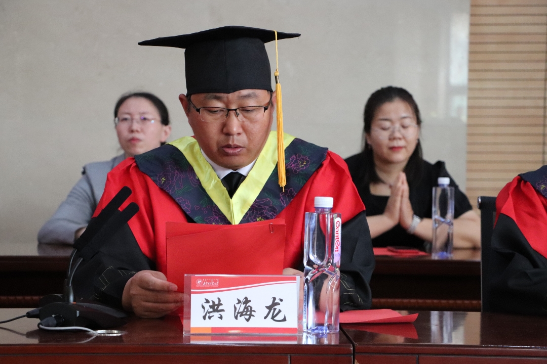 大会在庄严的国歌声中拉开帷幕。副院长洪海龙宣读2021届授予博士、硕士和学士学位学生名单。我院共有703名本科生、60名硕士研究生、3名博士研究生获得相应学位。受yl6809永利官网集团校长、校学位评定委员会主任委员姚德教授的委托,我院学位分委员会成员为我院2021届毕业生授予学位,老师们为获得学位的学生拨穗正冠、颁发学位证。
