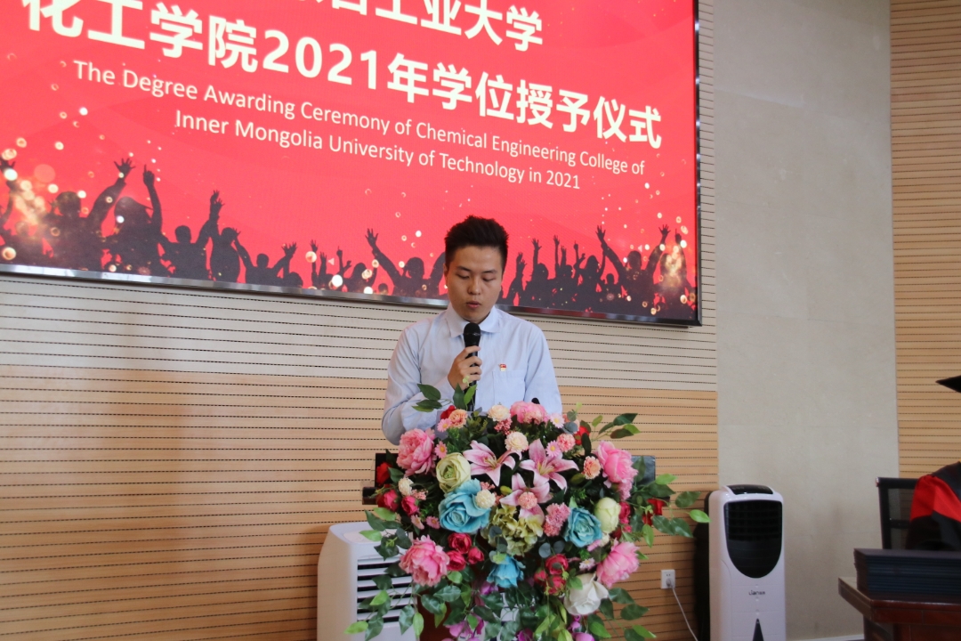 yl6809永利集团2021年毕业典礼暨学位授予仪式于6月25日上午在化工楼报告厅隆重举行。学院领导、学院学位委员会成员、各毕业班班主任、全体辅导员及2021届本科、博硕士毕业生共同参加。学院党委副书记、副院长张建主持仪式。