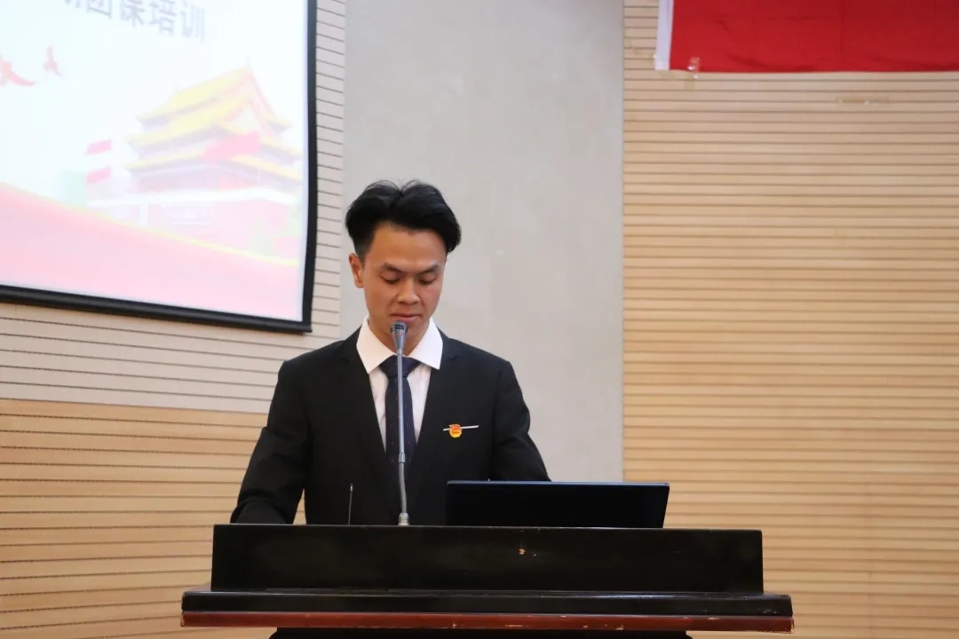 张清代表新发展团员发言。任敏代表学院团委鼓励新发展团员们,要时刻以一名合格团员的标准要求自己,认真学习团的知识,积极参加实践活动,顺利通过团校培训考核,明确团的任务,遵守团的章程,履行团员义务;在平时的学习,工作中时刻牢记自己是一名共青团员,处处起带头作用。用求知展开青春翅膀,用奋斗书写人生篇章。