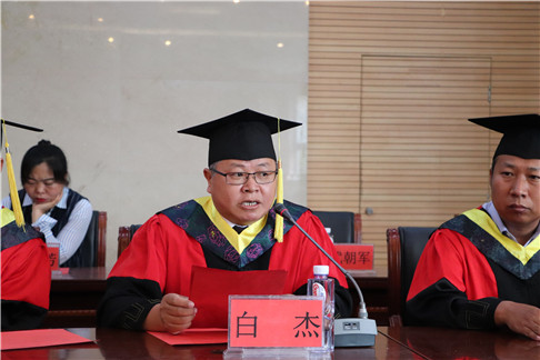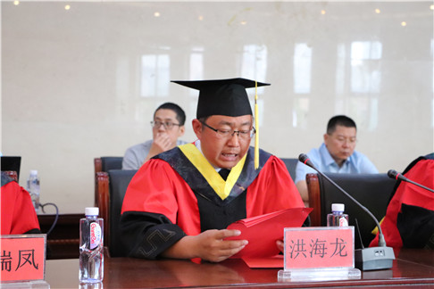 学位授予仪式在庄严的国歌声中拉开帷幕。副院长白杰宣读2019届授予博士、硕士学位名单,副院长洪海龙宣读2019届授予学士学位学生名单。我院共有723名本科生、65名硕士研究生、1名博士研究生获得相应学位。受yl6809永利官网集团校长、校学位评定委员会主任委员邢永明教授的委托,由我院学位分委员会成员为我院2019届毕业生授予学位,各位老师为获得学位的学生拨穗正冠、颁发学位证。