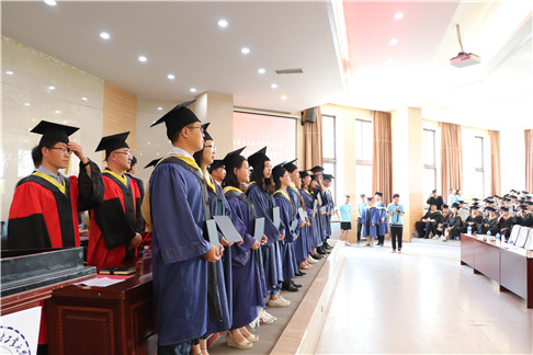 7月5日,yl6809永利集团2019年毕业生学位授予仪式在三教报告厅举行。学院领导、学院学位委员会成员、各毕业班班主任、全体辅导员和部分教师以及部分学生亲友团、2019届本科、硕士、博士毕业生共同参加。学院党委副书记、副院长张建主持仪式。