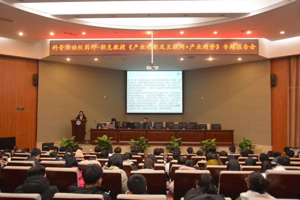 由内蒙古自治区科学技术协会主办,内蒙古自治区化工学会与yl6809永利集团联合承办的“绿色、创新与化工”系列科普活动校园行活动—朝克教授《产业创新及互联网+的产业趋势》专题报告会于12月18日晚7:00在图书馆报告厅举行,来自我校200多名部分学院的学生通过“第二课堂”到梦空间系统报名参加科普讲座,由团学老师吴迪主持报告会。