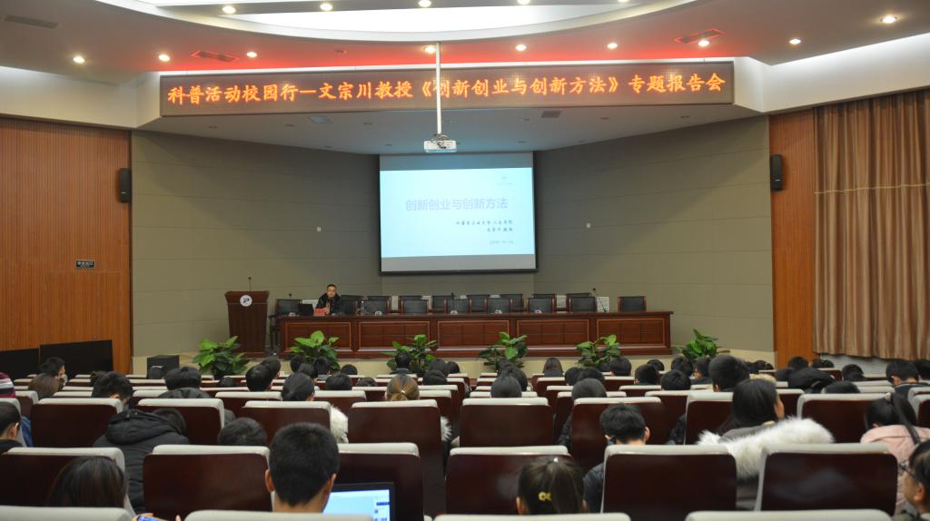由内蒙古自治区科学技术协会主办,内蒙古自治区化工学会与yl6809永利集团联合承办的“绿色、创新与化工”系列科普活动校园行活动—文宗川教授《创新创业与创新方法》专题报告会于12月13日晚7:00在图书馆报告厅举行,来自我校200多名部分学院学生通过“第二课堂”到梦空间系统报名参加科普讲座,团学老师张宇主持报告会。
