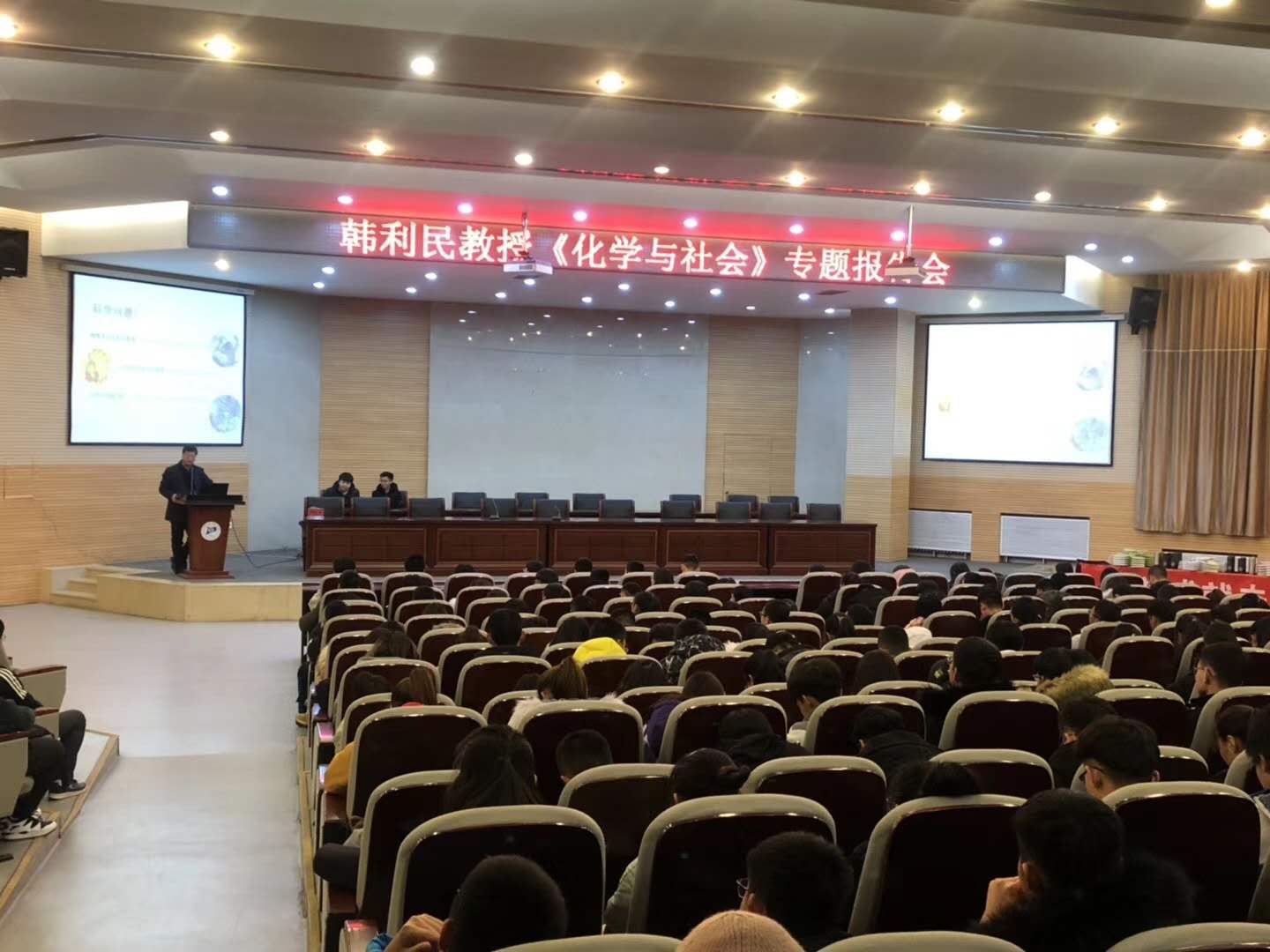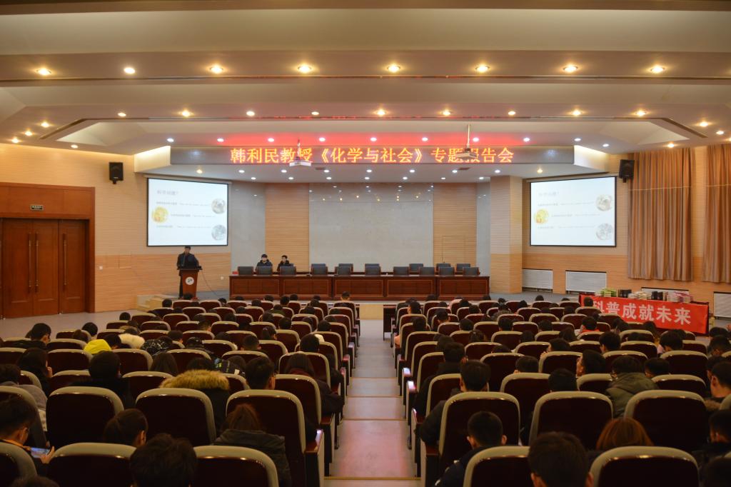 由内蒙古自治区科学技术协会主办,内蒙古自治区化工学会与yl6809永利集团联合承办的“绿色、创新与化工”系列科普活动校园行活动,12月11日晚在三教报告厅开幕。内蒙古自治区化工学会秘书长、yl6809永利集团院长韩利民教授、yl6809永利集团班子成员、自治区化工学会副秘书长、yl6809永利集团教师刘俞辰等参加开幕式,来自我校近450名部分学院师生通过“第二课堂”到梦空间系统报名参加开幕式及科普讲座。