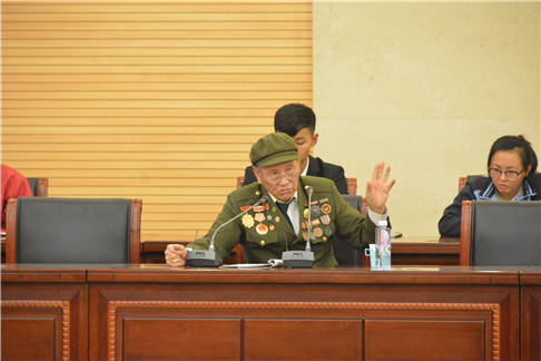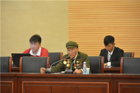 胸前佩戴着多枚闪亮勋章的李秉仁老先生缓缓地走进现场,颤颤巍巍举起右手,行军礼,全场为之动容,起立鼓掌致敬。他为大家讲述了巧过大凉山、强渡大渡河等一系列惊心动魄的战争,红军爬雪山、过草地、吃树皮等艰苦岁月。同时,他还分享了参加抗美援朝战争的亲身经历。他饱含激情的言语展现出中国军魂与中华气魄,感动着现场每一位师生。大家纷纷表示,这是大学里最难忘的一次学习,从李老的讲述中汲取自己所需的力量,让自己的信念更加坚定。