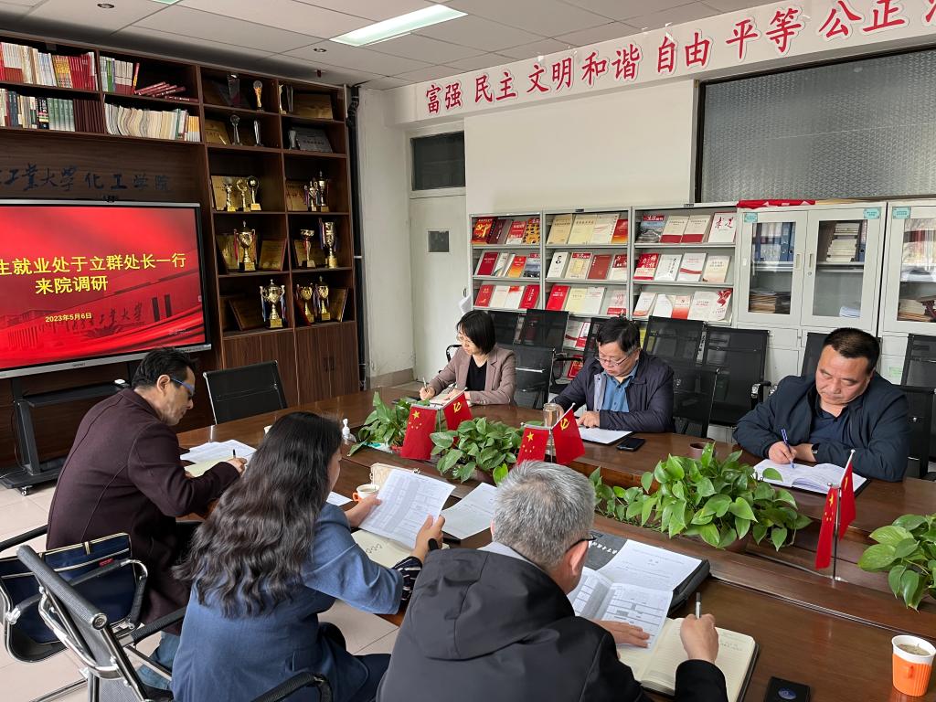 5月6日上午,我校招生就业处于立群处长、张兴涛副处长一行深入yl6809永利集团调研了学院招生就业工作,学院王凯书记、白杰院长、李佳副院长参会,会上双方深入探讨了学院2023年招生计划制定,及2023届毕业生就业难点、堵点,并研究了提升就业率、就业质量的突破口。