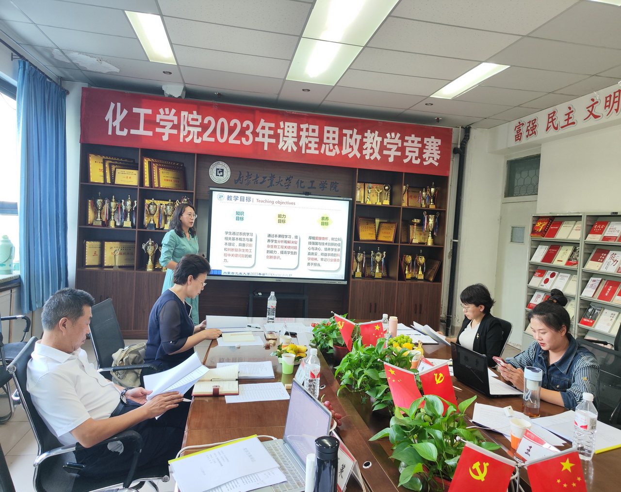根据教务处下发的“关于举办2023年课程思政教学比赛的通知”精神,为进一步推进专业课程思政建设,提升教师课程思政教学能力,促进课程思政建设经验交流与推广,yl6809永利集团于2023年9月14日举行了yl6809永利集团课程思政教学比赛,宝呼和等14位教师参加了比赛。大赛评委组由材料科学与工程学院陈芙蓉教授任组长,教务处副处长徐睿琛、yl6809永利集团督导组组长高智、化工系副主任米亚策、化工系党支部书记李娜5位老师组成。