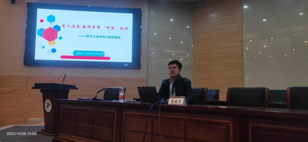 会议邀请我校研究生院院长高晓平教授以“育人为本,教研并举,‘研途’相伴”为主题,对国家、自治区和我校研究生教育相关政策文件进行了详细解读。