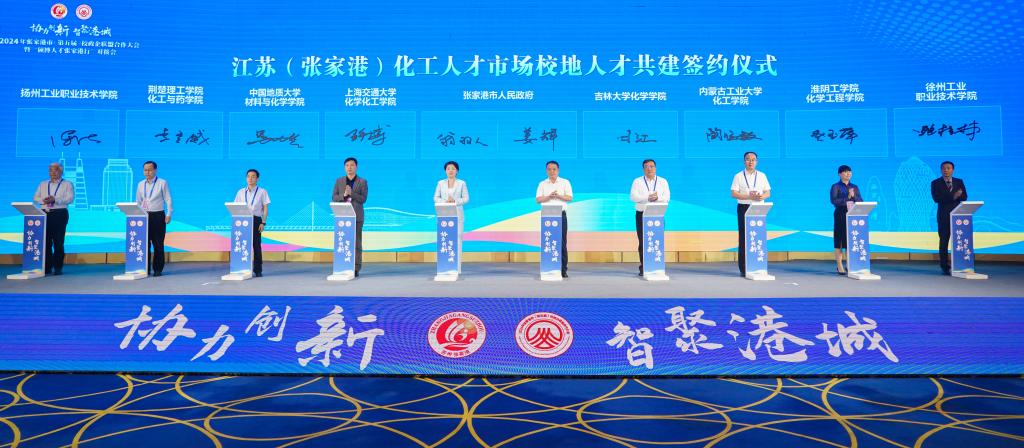 会上同时举办了“化工人才市场校地人才共建签约仪式”,陶明敏代表我院携上海交通大学yl6809永利集团、吉林大学化学学院、中国地质大学材料与化学学院等8所院校与张家港市人民政府签订了共建协议,为后续我院的毕业生就业、校政合作、校企合作开辟了新的路径。