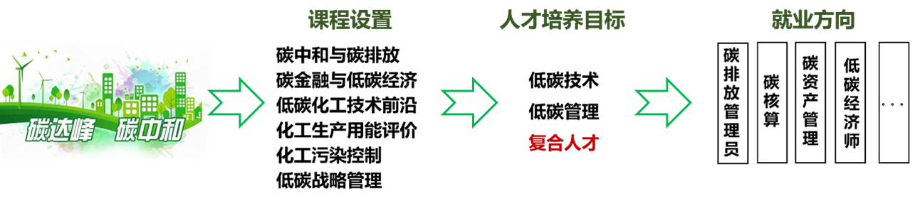 面向国家与地区重大战略需求,突出低碳技术与碳排放管理,推进化工+经管学科融合,培养跨学科、跨专业人才,整合相关领域精英团队。