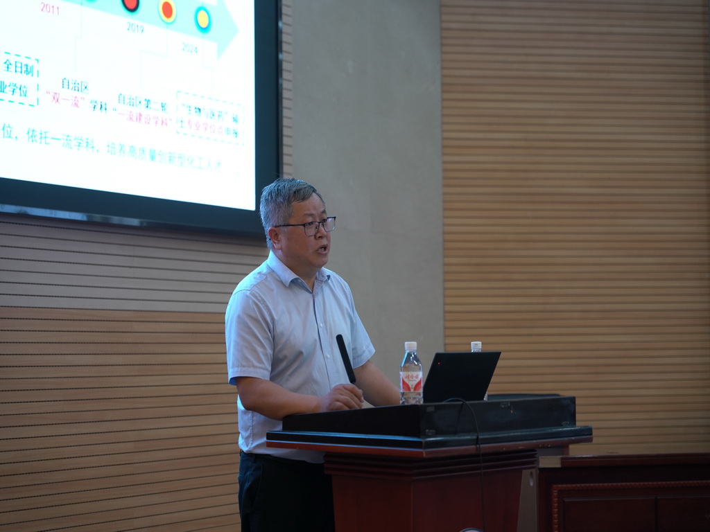 白杰结合自治区社会发展需求、学校办学定位,阐述了学院对学科专业建设的规划与思考,并汇报了学院近年来的办学特色与亮点。