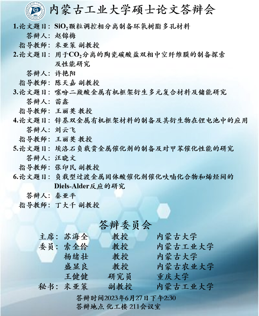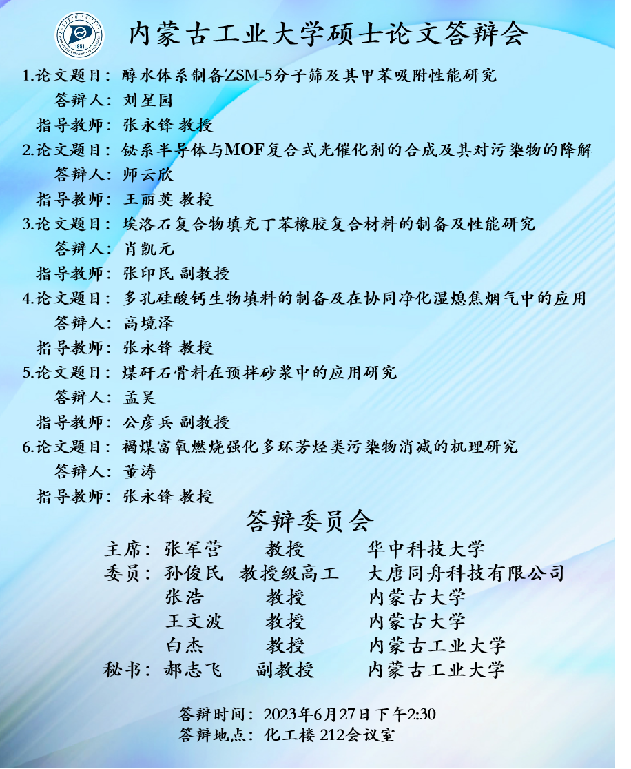 2023届硕士研究生学位论文答辩6月27日答辩日程