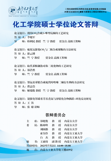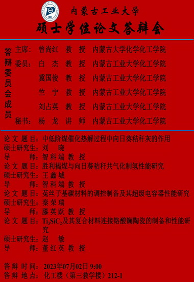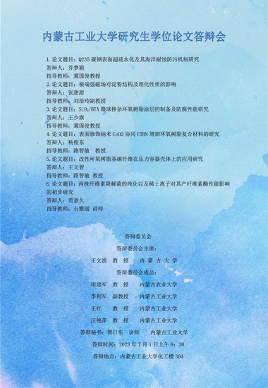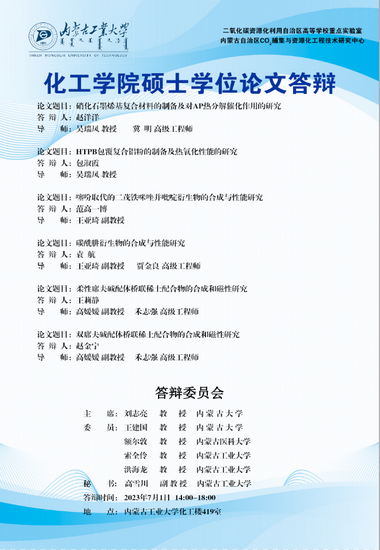 yl6809永利集团2023届硕士研究生学位论文答辩7月3日答辩日程