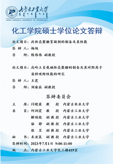 yl6809永利集团2023届硕士研究生学位论文答辩7月1日-2日答辩日程