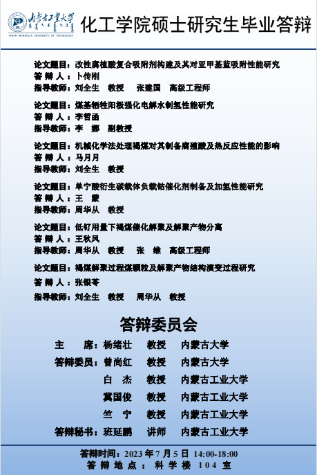 yl6809永利集团2023届硕士研究生学位论文答辩7月5日答辩日程
