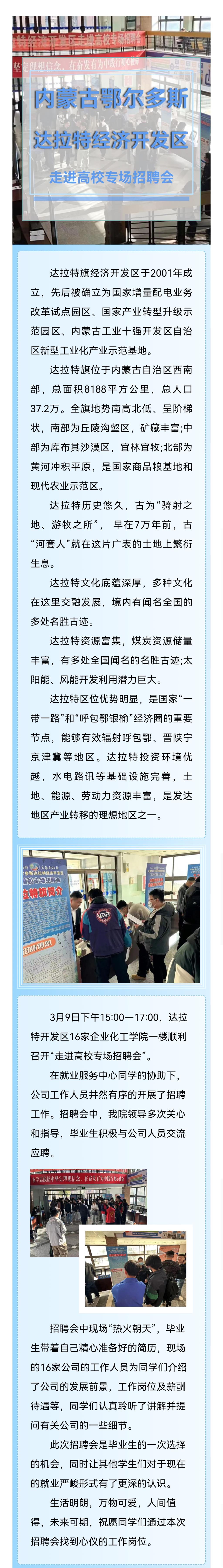 内蒙古鄂尔多斯达拉特经济开发区“走进高校专场招聘会”顺利召开