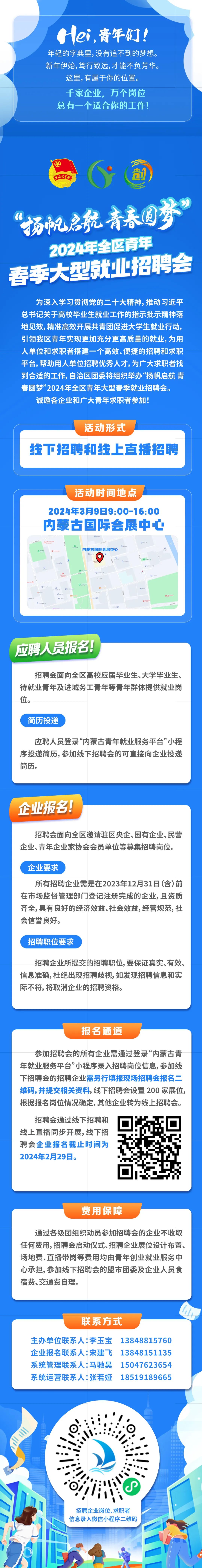 “扬帆启航 青春圆梦”2024年全区青年春季大型就业招聘会,诚邀您来