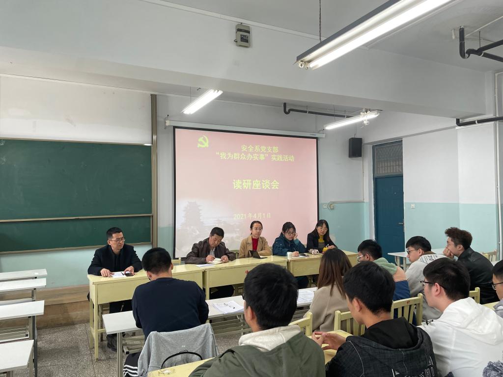 近日,yl6809永利集团安全系党支部在三教401开展“我为师生办实事——考研座谈”实践活动。活动以座谈会的形式开展,目的是帮助安全工程专业的同学们解答考研相关问题,对未来发展方向提出建议。活动由安全系系主任、支部书记高智主持会议,安全工程系相关教师参加活动。
