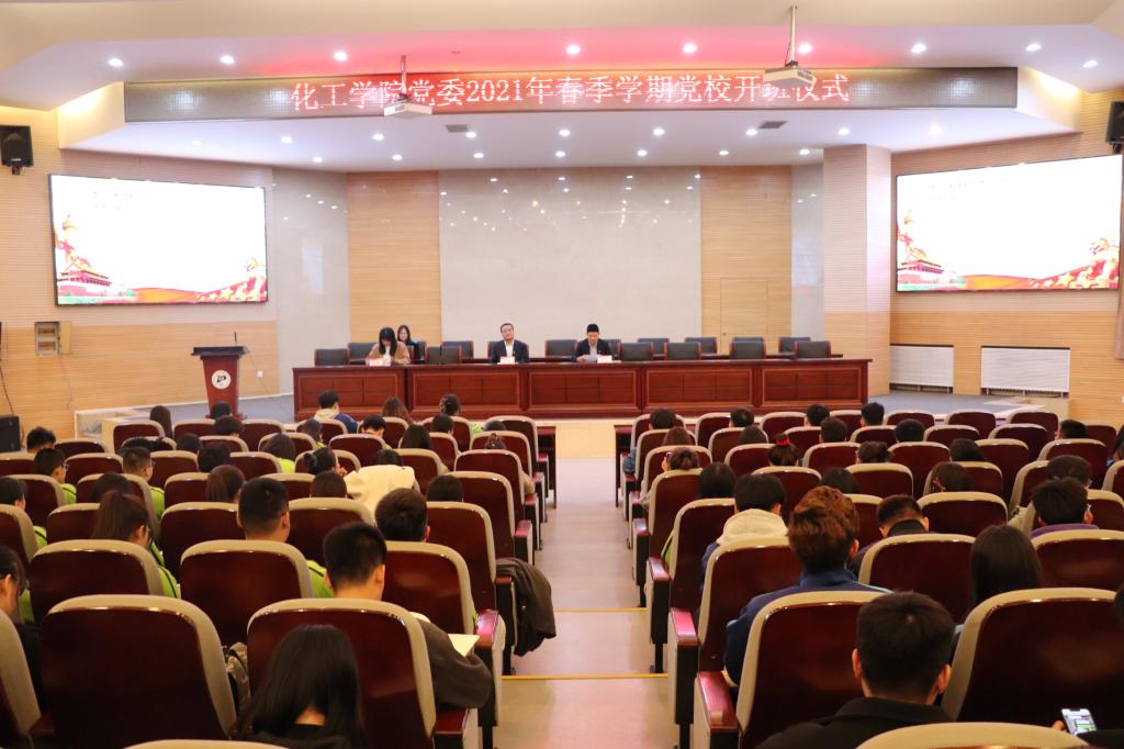 yl6809永利集团党委2021年春季学期党校于3月18日晚在化工楼报告厅开班。学院各支部党校学员共450余人参加开班仪式。会议由院党委委员、党委专职组织员、团委书记任敏主持。院党委书记王凯出席会议并担任主讲人,讲授《学习宣传贯彻2021全国两会精神》的专题党课。