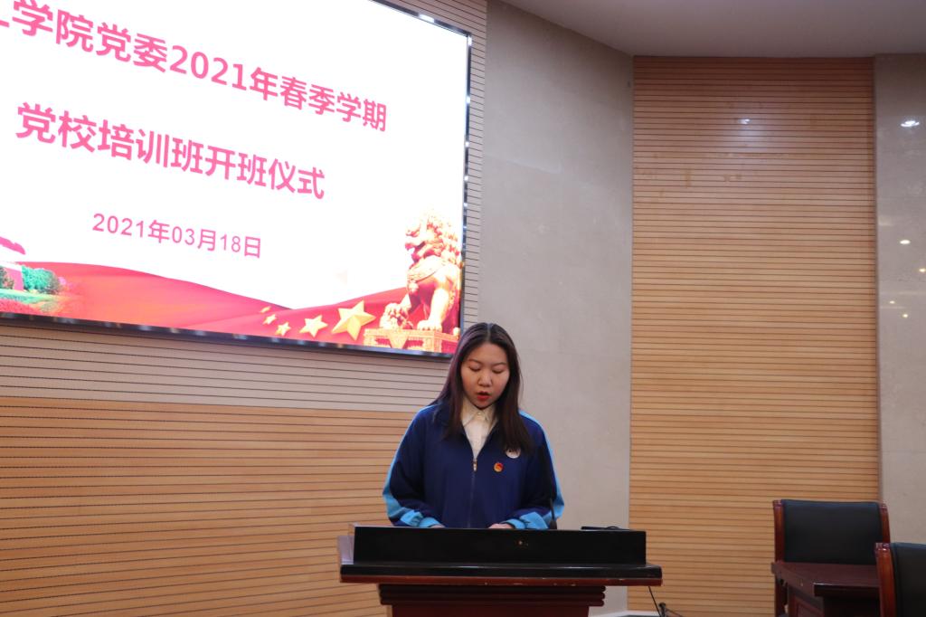 开班仪式上,院团学办公室副主任张宇宣读《yl6809永利集团党委2021年春季学期党校培训学习安排及考核办法》,制药18-2陈天娇同学代表2021年秋季学期党校学员发言。