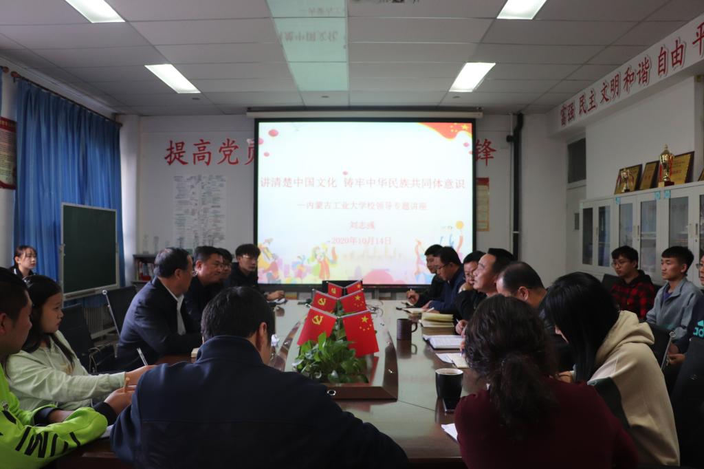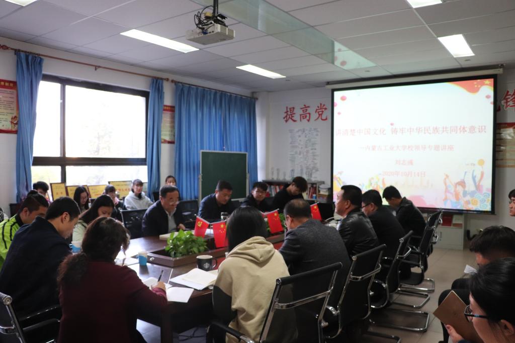 刘志彧强调,民族团结是推动国家发展的强大动力,56个民族休戚相关、互相合作、命运与共,共同培育、继承、发展了中华民族共同体意识。铸牢中华民族共同体意识是新时代民族工作的主线,是中华民族伟大复兴的必然选择,我们要高举各民族大团结的旗帜,谋长远之策,行固本之举,让中华民族共同体意识根植全校师生心灵深处,汇聚起建设美丽内蒙古、共圆祖国梦想的磅礴力量;要大力弘扬民族传统文化,积极拓展我校民族团结进步教育基地建设、队伍建设,提升教育水平,促进各民族师生员工之间的交往交流交融,教育引导全校师生强化“三个离不开”的意识、增强“五个认同”,始终在思想上政治上行动上同以习近平同志为核心的党中央保持高度一致,为推动学校事业高质量发展贡献力量。
