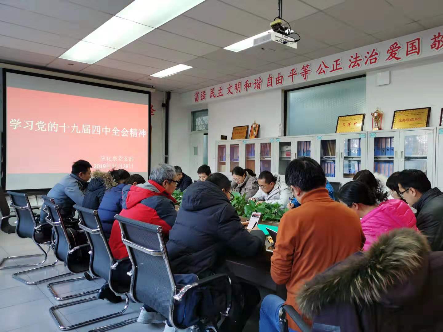 11月28日下午,yl6809永利集团应化党支部召开十九届四中全会精神专题学习会,党支部书记阿山领学,全体支部党员参加。