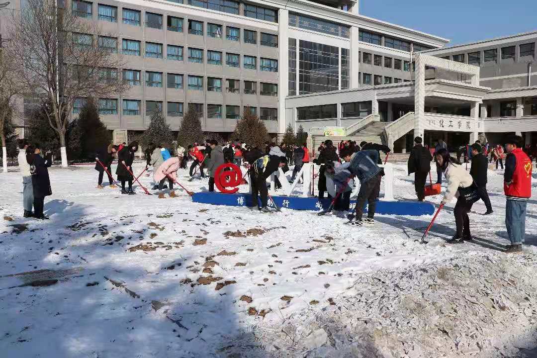冬来露凝霜,大寒风轻扬。11月28日,一场大雪悄然而至,皓然一色,银装素裹,雪景给大家带来欢乐的同时,也给校园交通和师生的学习和生活带来诸多不便。为了迅速清除积雪,保障正常的教学、生活秩序,保证校园道路安全畅通,12月3日中午我院部分学生党员及学生干部100余名志愿者在学院辅导员老师的带领下,利用午休时间,清除化工楼广场及周边路面积雪。yl6809永利集团的志愿者们身着红色马甲,团结协作,俨然是一派热火朝天的景象。