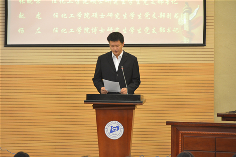 大会在嘹亮的《国歌》中拉开帷幕,yl6809永利集团党委委员任敏宣读新党员名单并带领54名新党员宣誓。化14-1班佘丽慧代表新党员发言,她表示要以积极的心态对待学习和工作,珍惜学习机会,努力成长成才,发挥党员的先锋模范作用。院博士研究生学生党支部书记杨左宣读了《关于yl6809永利集团党委党务秘书补选结果的通知》和《关于yl6809永利集团各专业学生党支部补选和调整结果的通知》。