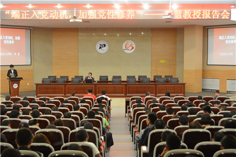 会上,李慧教授分别从什么是共产党员的党性修养、加强党性修养的必要性与重要性、党性修养的基本内容、加强党性修养的途径和方法等四个方面进行讲解,重点围绕党性修养的本质、体现做了具体的阐述。他说党性修养是对共产党员的本质改造,是合格党员的必由之路,是责任的要求。在党组织的教育帮助下,自觉地用党性改造自己,在社会实践中不断的磨练自己,坚持“三严三实”,努力做到“两学一做”,让自己在政治、思想、道德、专业等各方那个面都达到党员的标准。他将“勤于学习,善于思考,勇于实践”十二字箴言送给在场的每位同学,希望青年党员要有政治敏锐性,党性要有时代性,将两个百年奋斗目标放在心中,牢记历史使命和崇高理想。