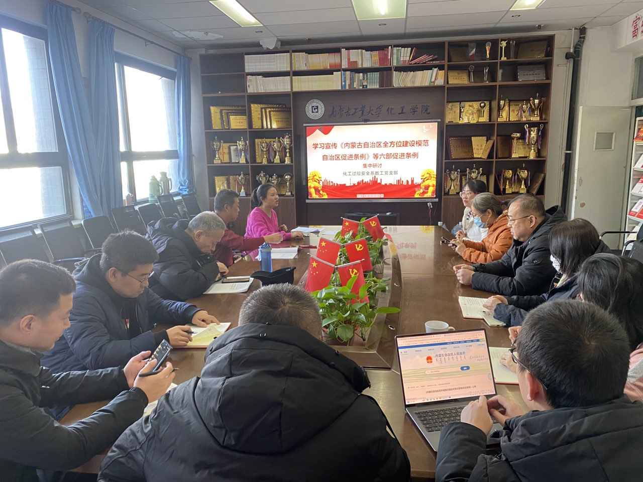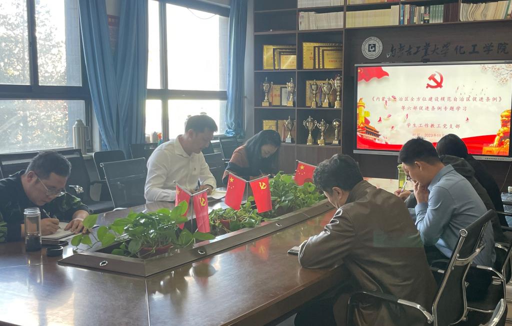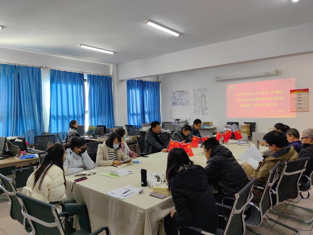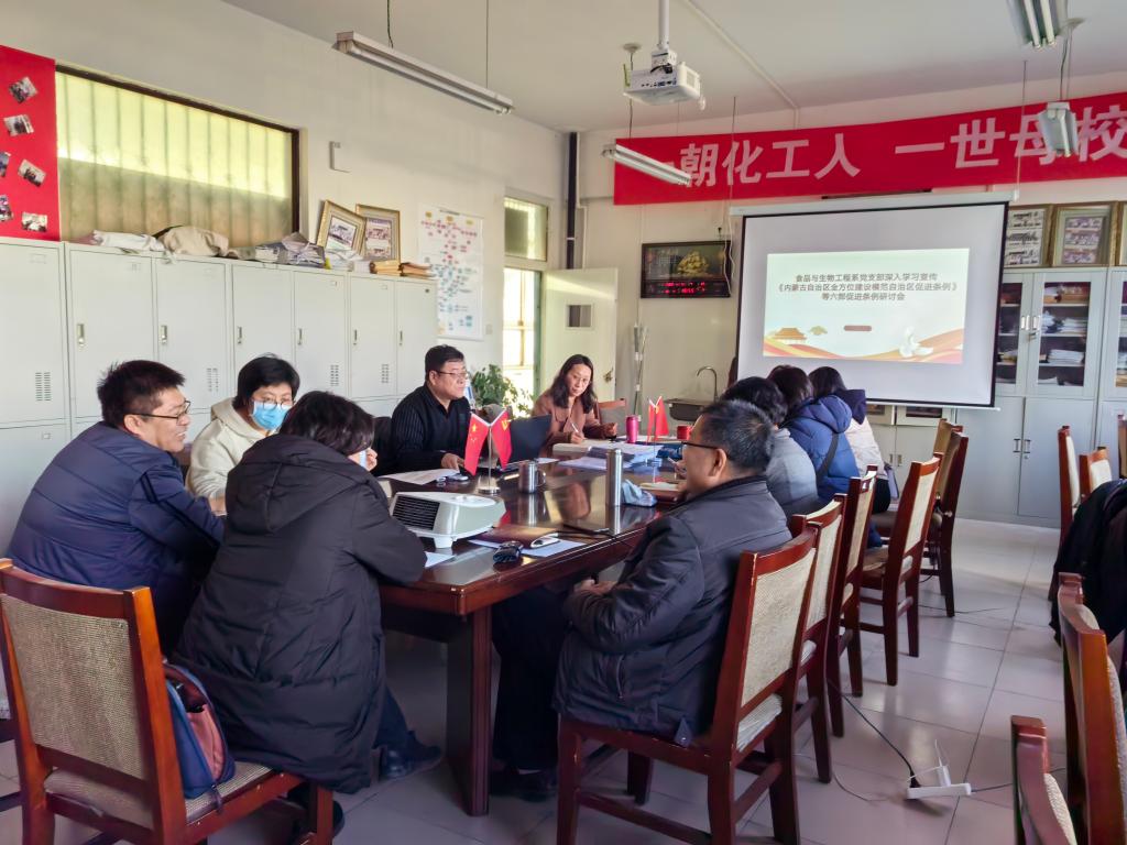 会上,各支部党员们集中观看“解读《内蒙古自治区全方位建设模范自治区促进条例》”等视频资料,支部委员对《内蒙古自治区建设我国北方重要生态安全屏障促进条例》《内蒙古自治区筑牢祖国北疆安全稳定屏障促进条例》《内蒙古自治区建设国家重要能源和战略资源基地促进条例》等六部条例进行重点领学。各支部党员围绕专业、学科、人才培养、科学研究与社会服务等相关内容,结合工作实际进行了研讨发言。
