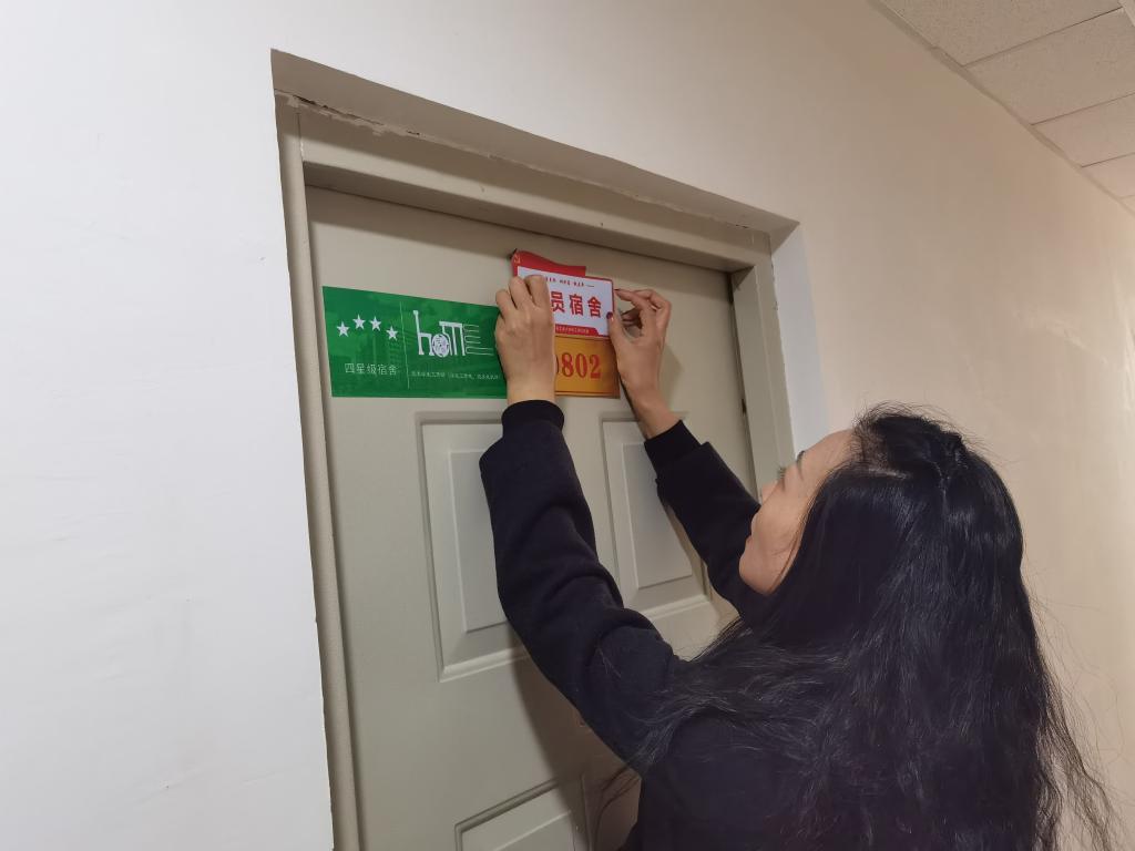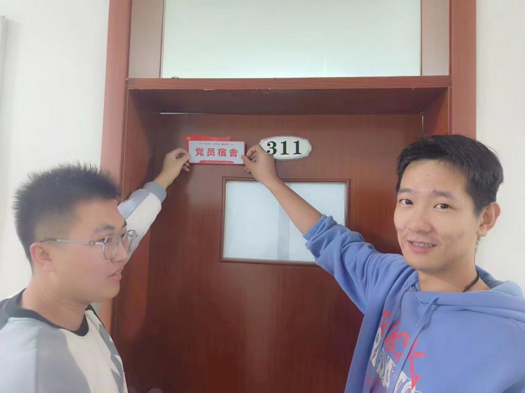 yl6809永利集团党委副书记、副院长李佳、党委委员、专职组织员任敏、学生工作办公室主任张宇与学生党支部书记一起为学生党员宿舍张贴“党员宿舍”标识,授牌亮身份,让学生党员由“隐”到“显”,亮出身份,参与宿舍管理与服务,带动寝室学风建设,真正做到“一名党员、一面旗帜,一间党员宿舍,一座先锋堡垒”。