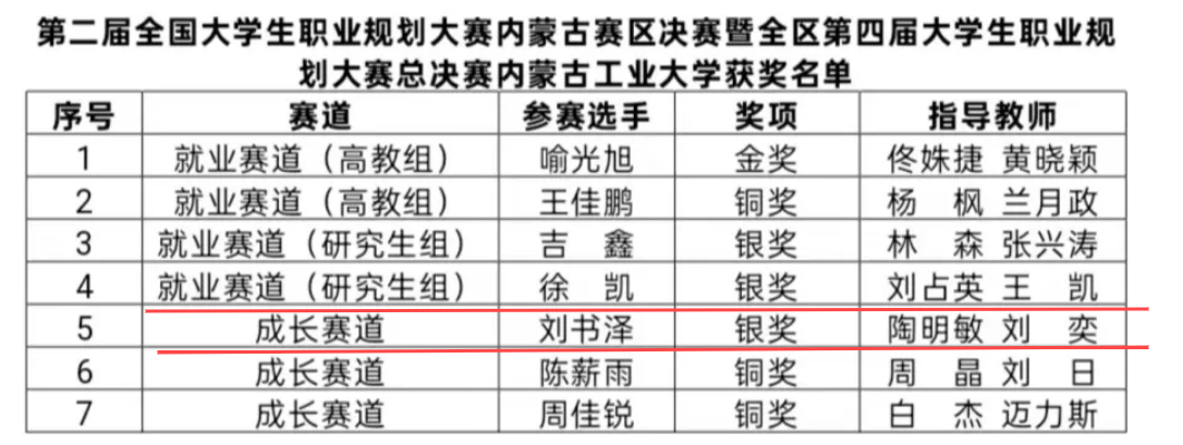 3月2日,由自治区教育厅主办、内蒙古师范大学承办的第二届全国大学生职业规划大赛内蒙古赛区决赛暨全区第四届大学生职业规划大赛总决赛圆满落幕。本次大赛分设成长赛道和就业赛道,共有来自全区各高校共20余万名选手报名参加。经校级初赛、自治区复赛、现场决赛三阶段激烈角逐,我院2位学生入围决赛,荣获银奖2名,3名指导教师获优秀指导教师奖。