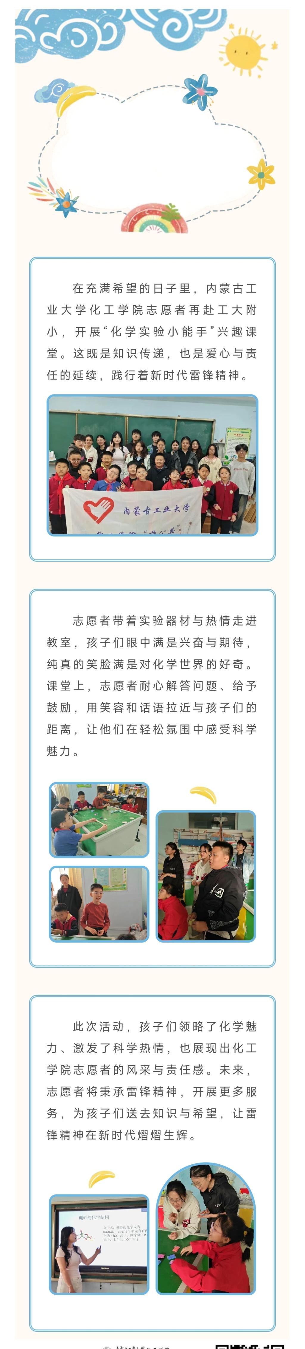新时代雷锋精神耀北疆|yl6809永利集团志愿者再赴工大附小开展“趣味化学小课堂”