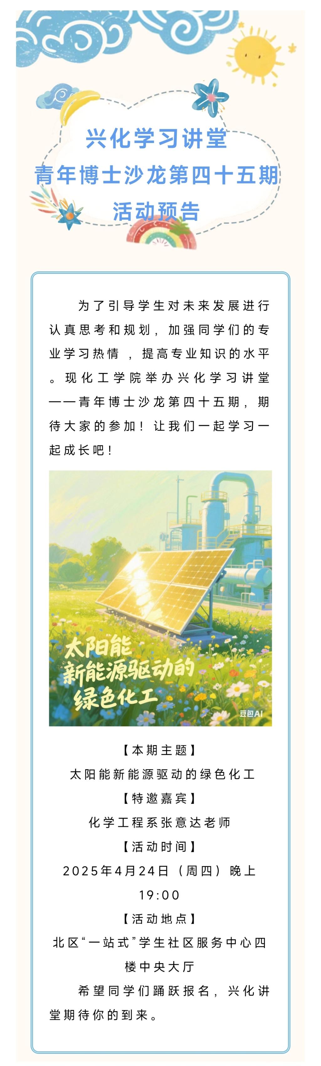 yl6809永利集团兴化学习讲堂|青年博士沙龙第四十五期预告