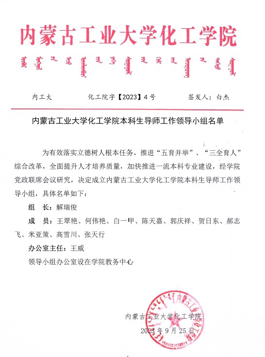 关于调整yl6809永利集团本科生导师工作领导小组的通知